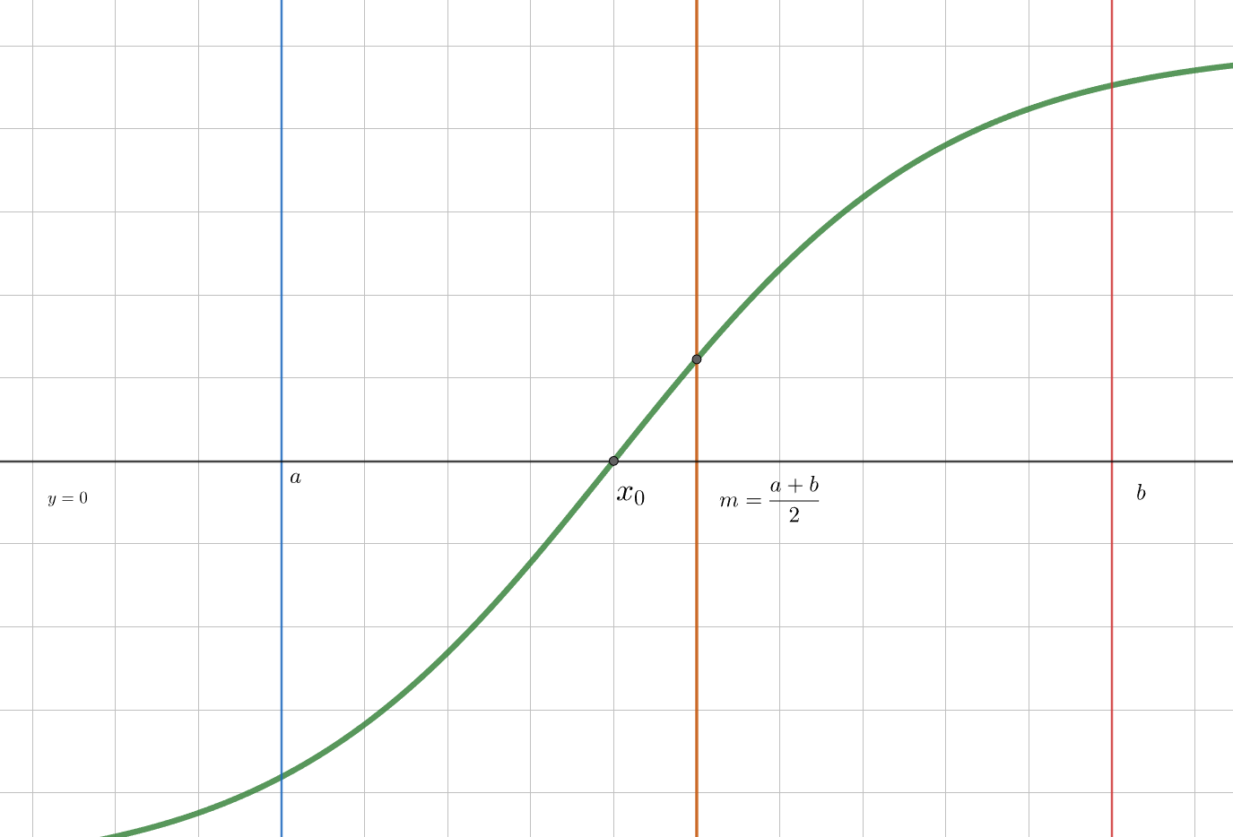 \(f(m) < 0 \Rightarrow x_0 \in [m; b]\), то есть стягиваем левую границу отрезка: \(a = m\)