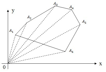 Отметим, что знак итогового результата зависит от того, в каком порядке обходить многоугольник (чтобы про это не думать, можно взять его по модулю).